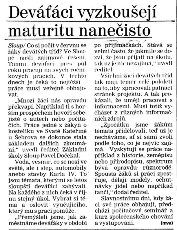 Na této stránce máte možnost znovu si přečíst vybrané články z novin a časopisů.