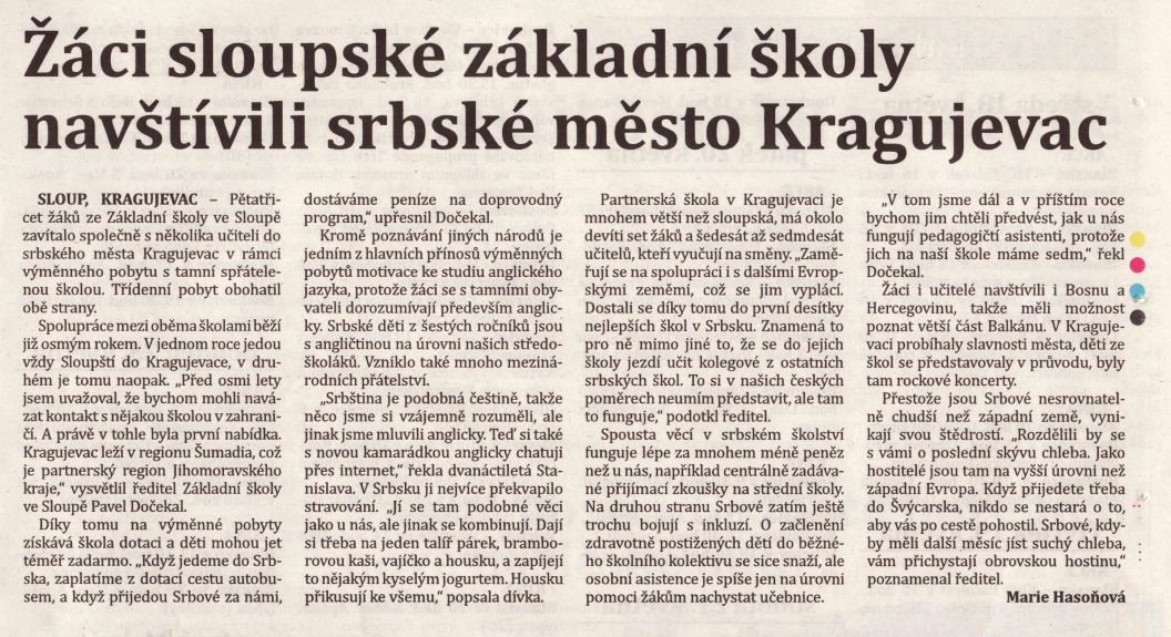 Regionální televize RTA Jižní Morava natáčela a v regionálním deníku TV Prima odvysílala z naší školy velmi pěknou reportáž o projektu Patronát.