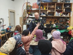 Mali hasiči ve školní družiněVelké poděkování patří panu Krškovi, Fialovi a Nejezchlebovi za ukázku vozové techniky a výbavy místních hasičů. Děti si vyzkoušely stříkání ze džberovky a prohlédly si hasičskou zbrojnici. |